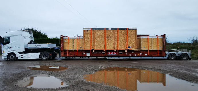 La sécurité est garantie par un plan de saisissage et calage spécifique validé par nos équipes techniques. Chaque pièce est fixée selon des normes strictes (IMO) pour résister aux mouvements du transport maritime et routier.
